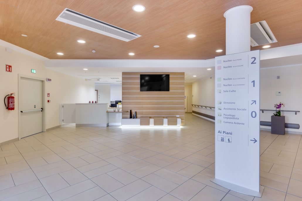 Sia il personale che i residenti, in caso di necessità, possono utilizzare il sistema di chiamata presente in ogni letto e bagno. La chiamata è udibile nei vari reparti ed è possibile gestirla tramite telefono in dotazione al personale.