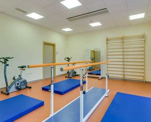 Nella Residenza è stata arredata una palestra con strumentazione innovativa e tecnologica per assistere e riabilitare le persone. Sono presenti: parallele, scale fisioterapiche, standing , pedaliera elettrica, cyclette, cuscini , rulli e palloni di varie dimensioni e colori.